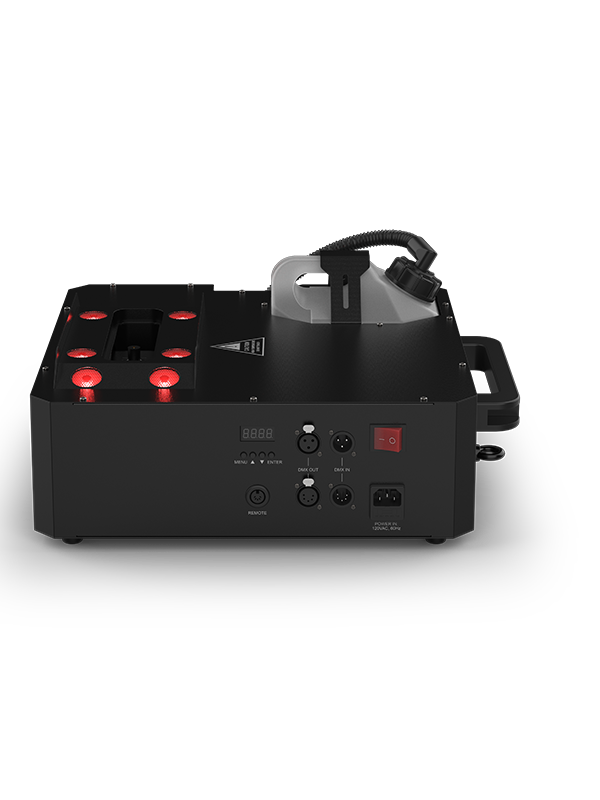 A contrôler directement depuis l’unité ou via DMX ou avec la télécommande sans fil Geyser fournie